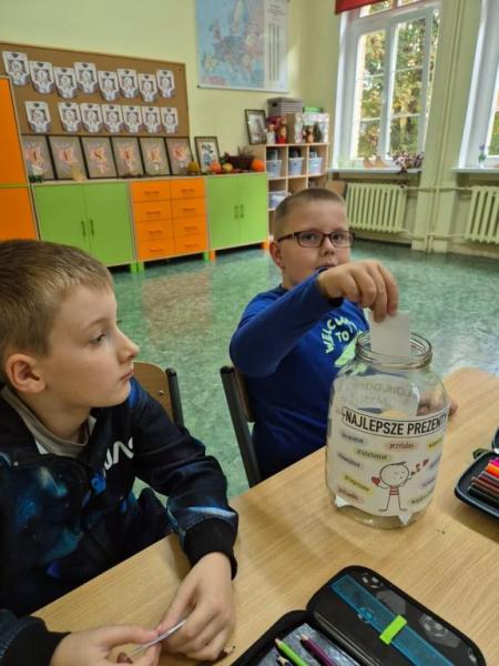 Dodatkowo w każdej klasie znajdował się „Słoik dobrych myśli”, do którego dzieci przez cały tydzień wrzucały karteczki z miłymi słowami dla kolegów, koleżanek i całej klasy. Na zakończenie uczniowie wraz z wychowawcami czytali i omawiali wszystkie wpisy, dzieląc się życzliwością i pozytywną energią.