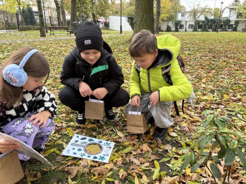 dzieci pracowały w drużynach z kartami pracy, lupami. Wypełniając