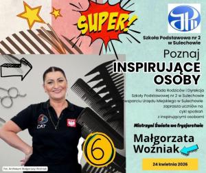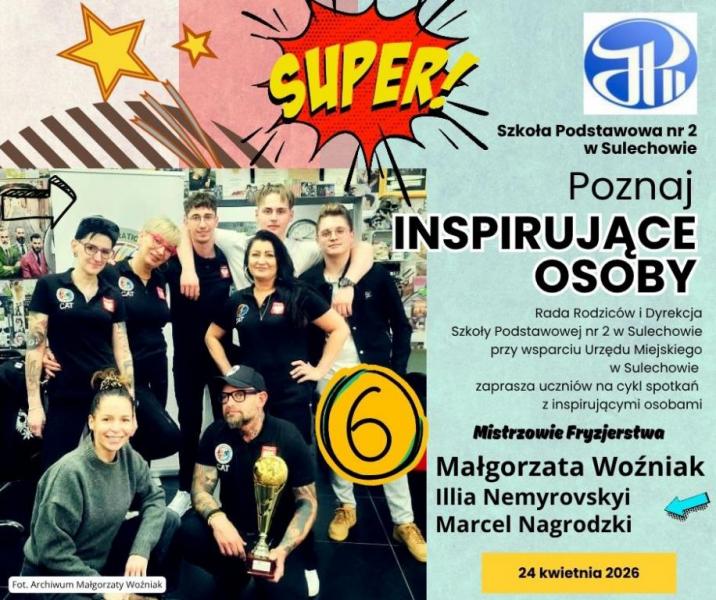 W najbliższy piątek tj. 24.04.2026r. Rada Rodziców wraz z Dyrekcją SP2 organizuje kolejne spotkanie z cyklu Poznaj Inspirujące Osoby.