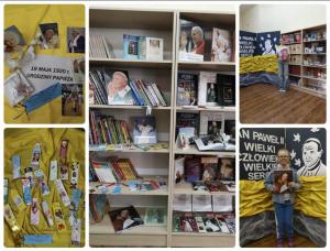 W związku ze zbliżającą się rocznicą urodzin Papieża, biblioteka szkolna zaprasza uczniów do skorzystania z zasobów książek, czasopism poświęconych Janowi Pawłowi II. Zachęcamy także do przeczytania ciekawostek, cytatów oraz obejrzenia zakładek do książek wykonanych przez uczniów.