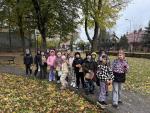 Uczniowie kl. 2B wzięli udział w lekcji przyrody w pobliskim parku. Podczas zajęć dzieci pracowały w drużynach z kartami pracy, lupami.